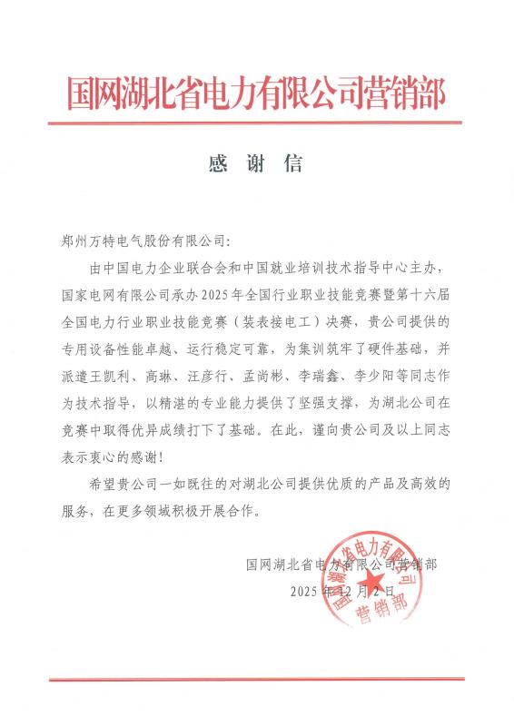 這一封感謝信,不僅代表了客戶對萬特電氣的認可,更是激勵我們不斷創新產品、提高服務意識的進步源泉。
